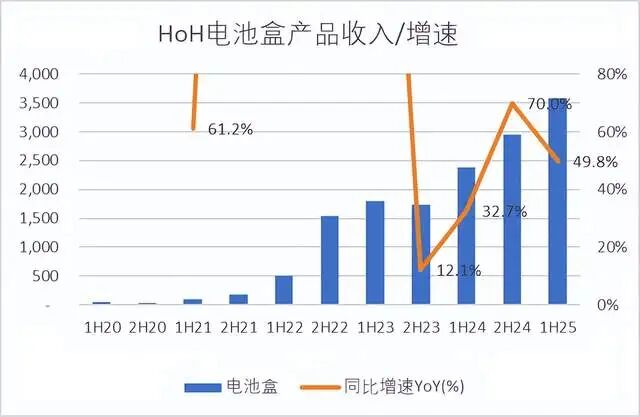 敏实24年电池盒的收入是53.4亿,同比+50.9%,今年上半年电池盒收入达到35.8亿,同比+49.8%,占收比为29.2%,已经成为公司第一大产品线。