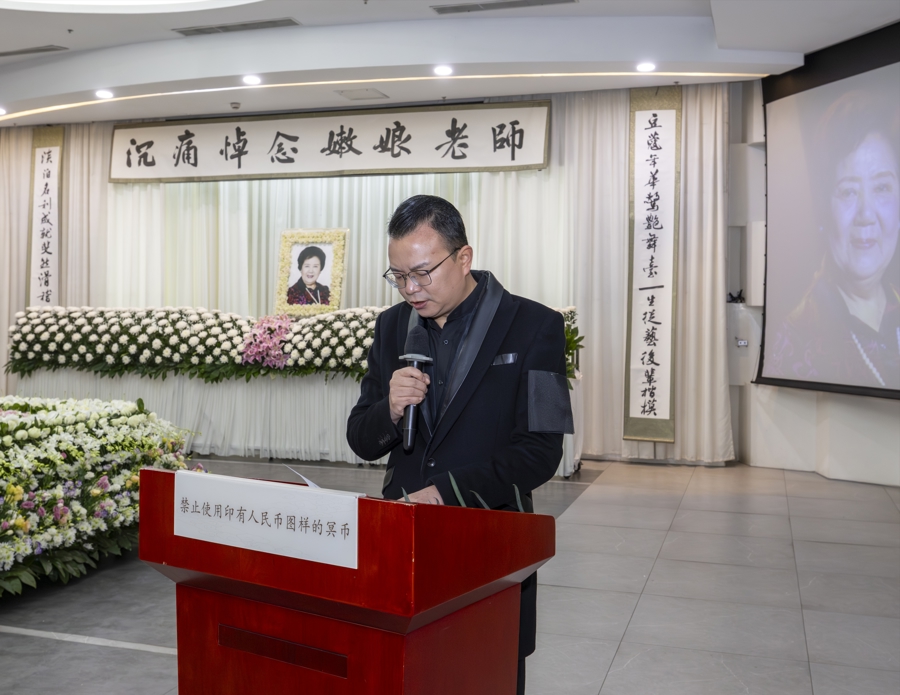 上海独脚戏艺术传承中心(上海市人民滑稽剧团)党支部书记潘前卫在滑稽表演艺术家方丽英(艺名嫩娘)遗体告别仪式发言 均高于丽摄